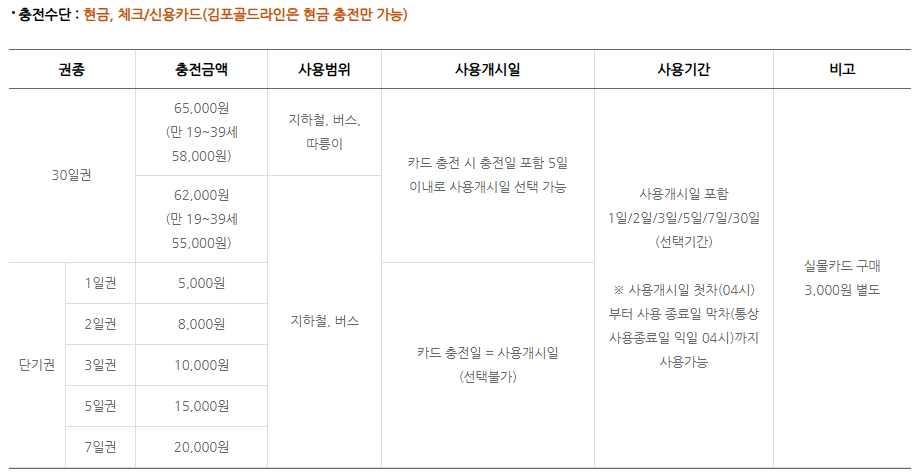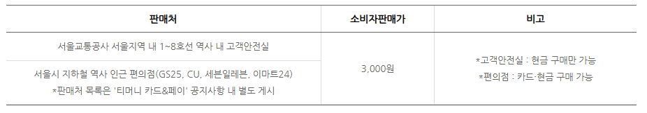 - 앱 또는 은행 ATM에서 충전 가능.