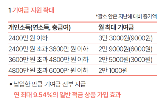 - 가입기준 개인소득에 따른 매칭비율.
